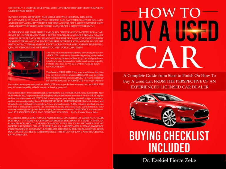 These two books have been featured on CBS, NBC, ABC, FOX, Google News, and on over 200 news sites. For only $2.99 for e-book, $4.99 for audiobook, or $8.60 for paperback; with only “one” of these books consisting of only 42 pages: Learn the psychology of a car sales person; learn the car selling process; learn how to negotiate; learn “when” to purchase; learn “reasons” to purchase; learn how to select car features; learn how to begin the process; learn what to expect when visiting a dealership; learn how to determine a mechanically sound and good quality vehicle; get a buying check list included in the book; and ultimately learn how to successfully purchase a vehicle on “your terms and pricing” with “How to Buy a Used Car” or “Used Car Buying Guide 2024.” Click above to purchase book now!!!